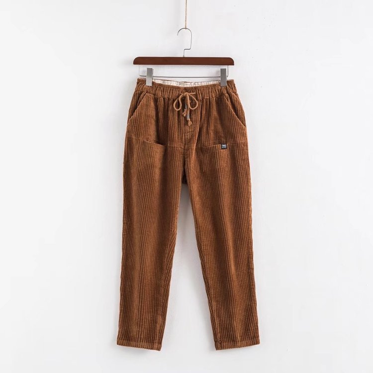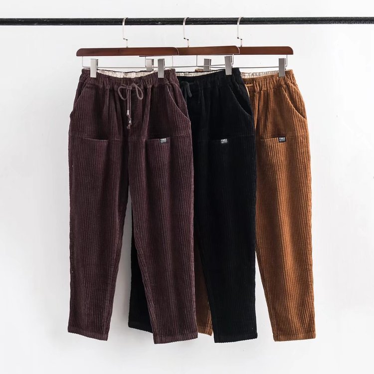 秋冬女裝韓版寬松高腰燈芯絨學生哈倫褲直筒九分褲女褲潮S6535