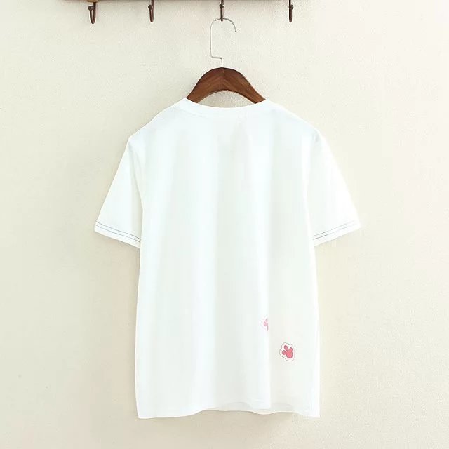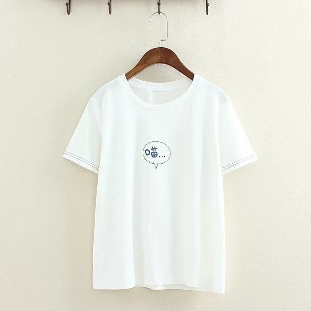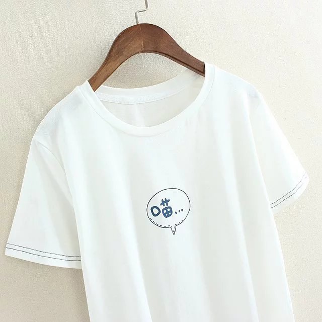 S9395 夏季學生短袖t恤女夏純棉寬松上衣卡通印花白色圓領體恤